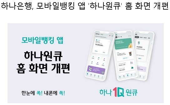하나은행, 모바일뱅킹 앱 '하나원큐' 홈 화면 개편