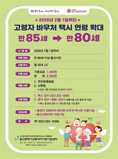 울산시, 교통약자 이용권(바우처) 택시 이동지원 확대