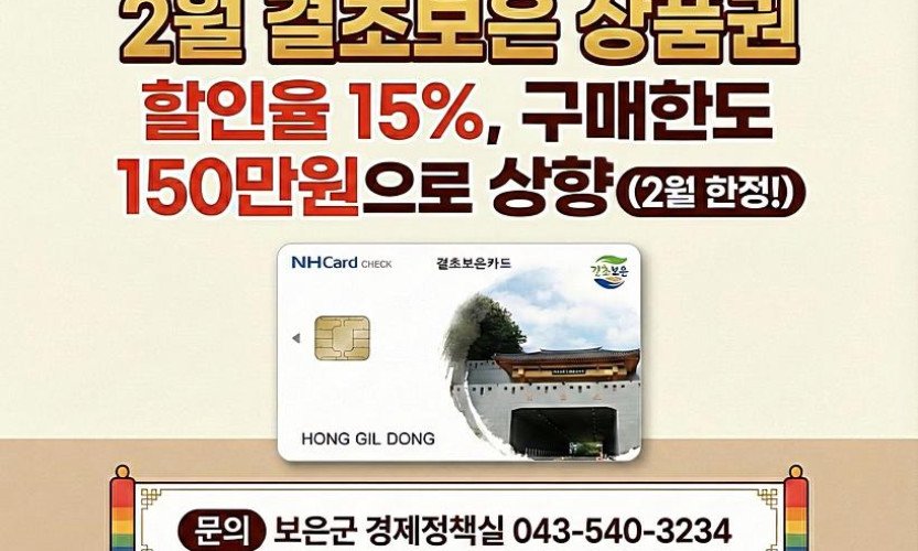 보은군, 설 명절 맞아 결초보은상품권 할인율·구매한도 한시 확대