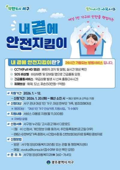 광주 서구, 여성 1인 가구 '안전지킴이' 강화
