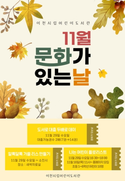 이천시립어린이도서관, '11월 문화가 있는 날' 운영