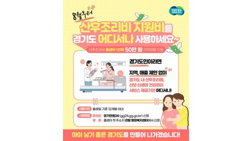 산후조리비 지원비, 8월부터는 경기도 어디서나 사용하세요