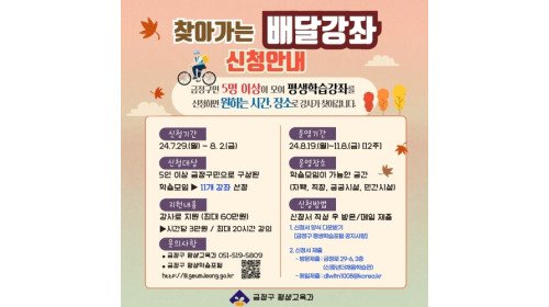 금정구, 2024년 하반기 '스마일 금정 배달강좌' 신청 접수
