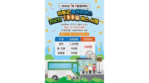 하동군 최초 시도한 '100원 버스' 경남도 확산