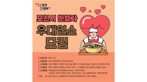포천시 "헌혈하고 우대 받으세요"…'헌혈자 우대업소' 모집