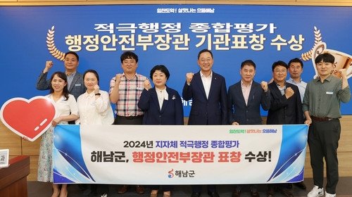 해남군, 적극행정 종합평가 행안부 장관표창 수상