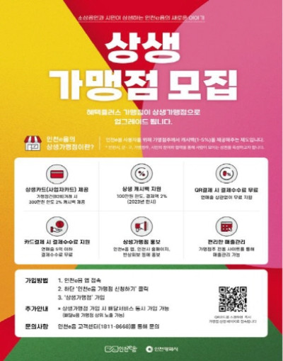 인천사랑상품권, 최대 17% 캐시백 '상생가맹점' 상시 모집