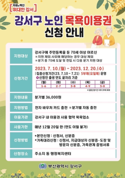 효도하는 부산 강서, '노인 목욕이용권' 신청하세요