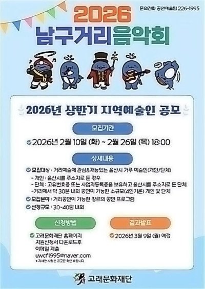 수영구는 "2월 발코니음악회는 겨울의 끝자락에 라이브사운드의 매력을 가까이에서 느낄 수 있는 무대가 될 것"이라며, "앞으로도 다양한 장르와 팀이 참여하는 공연을 통해 일상 속 문화 향유 기회를 넓혀가겠다"라고 밝혔다.