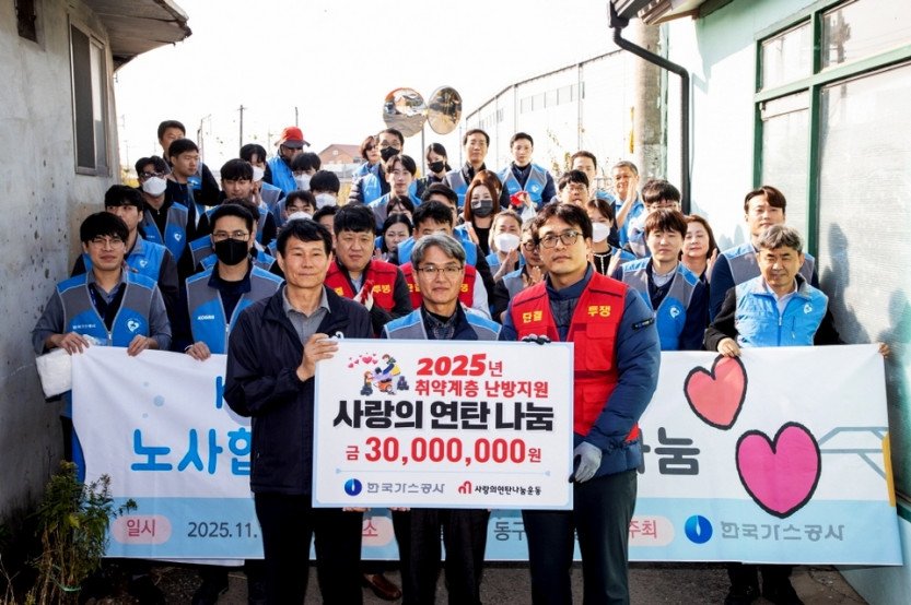 한국가스공사(사장 최연혜)는 11월 13일 대구 동구 방촌동 일대에서 '노사 합동 사랑의 연탄 나눔 봉사활동'을 시행했다고 밝혔다.이날 행사에는 안준영 가스공사 상생협력…