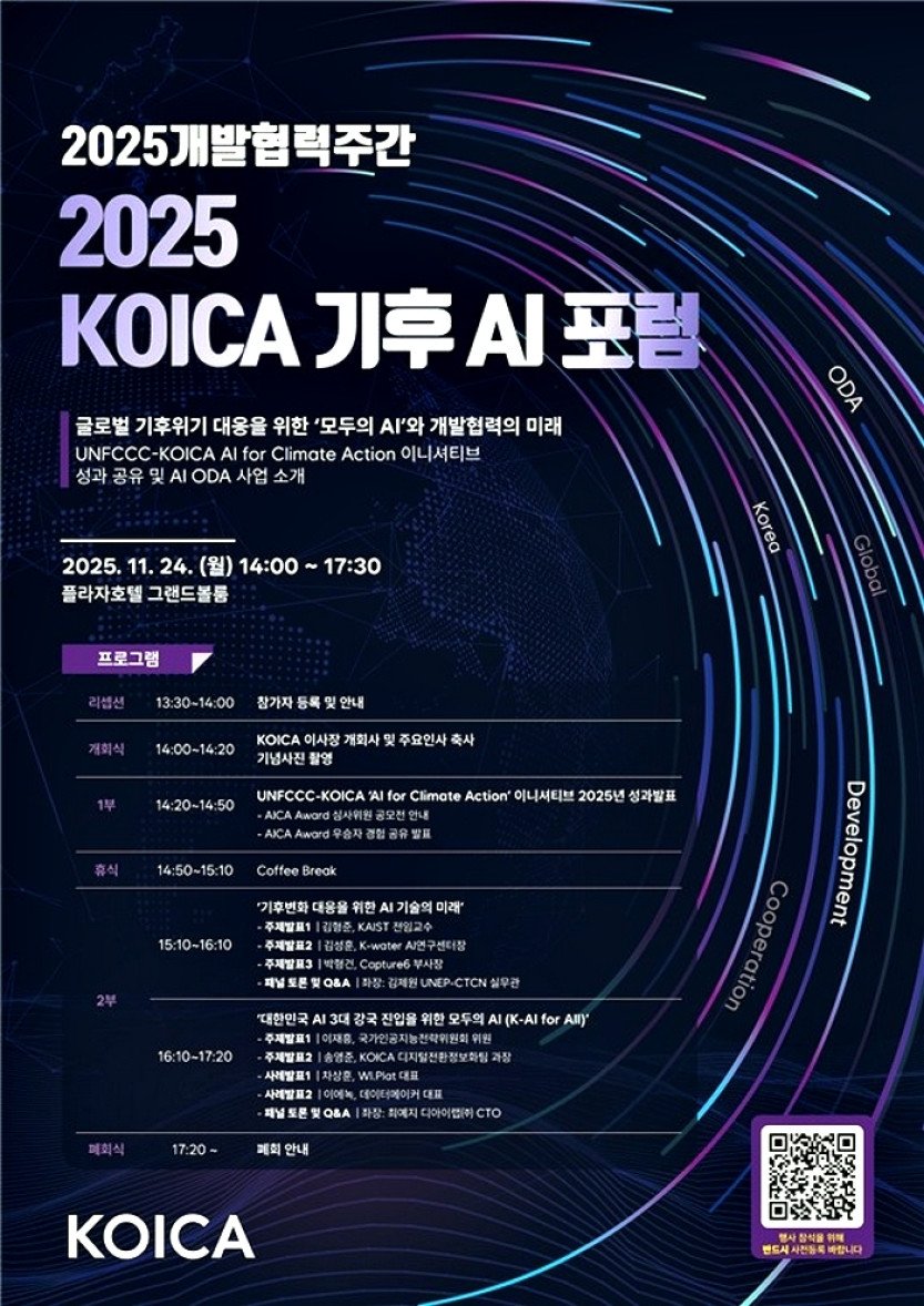 기후변화와 기술혁신이 세계의 화두로 떠오른 가운데, 코이카(KOICA·한국국제협력단)가 24일 오후 서울 플라자호텔 그랜드 볼룸에서 '2025 코이카 기후 AI 포럼'을…