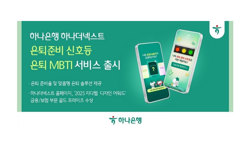 하나은행(은행장 이호성)은 은퇴설계·상속증여 솔루션 브랜드인 '하나더넥스트' 공식 홈페이지를 통해 '은퇴준비 신호등·은퇴 MBTI'서비스를 출시했다고 밝혔다.이번에 출시…