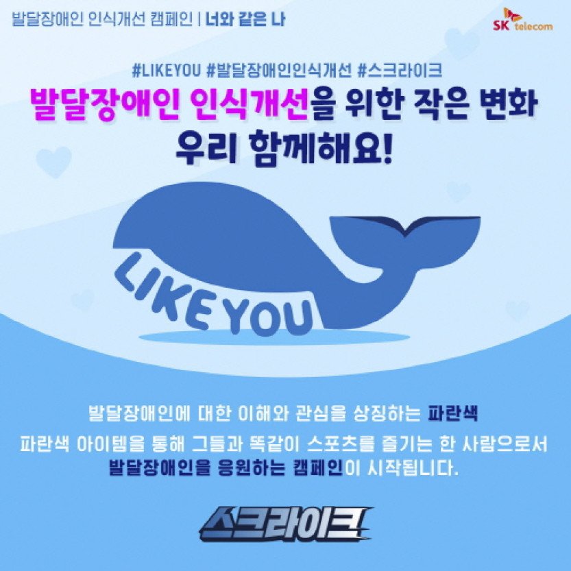 SK텔레콤(대표이사 유영상)은 발달장애에 대한 인식을 개선하고 편견 없는 스포츠 생태계를 조성하고자 '라이크 유(Like You)' 캠페인을 4일부터 오는 31일까지 시…