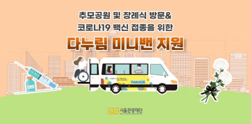 서울시와 서울관광재단(대표이사 길기연)은 관광약자 여행 지원 차량인 서울다누림 미니밴 일부를 추모공원 방문 등 경조사를 위한 이동 지원에 투입한다.관광약자, 특히 휠체어…