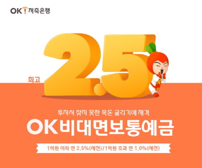 OK금융그룹의 계열사인 OK저축은행(대표 정길호)는 우대금리 조건 없이 높은 금리를 제공하는 입출금자유예금 상품인 'OK비대면보통예금'을 출시했다고 17일 밝혔다.'OK…