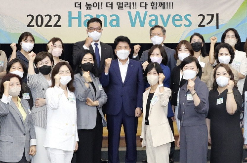 하나금융그룹(회장 함영주)은 명동 사옥 4층 대강당에서 그룹의 여성 리더 육성 프로그램인 '하나 웨이브스(Hana Waves)' 2기 출범식을 개최했다고 밝혔다.올해 2…