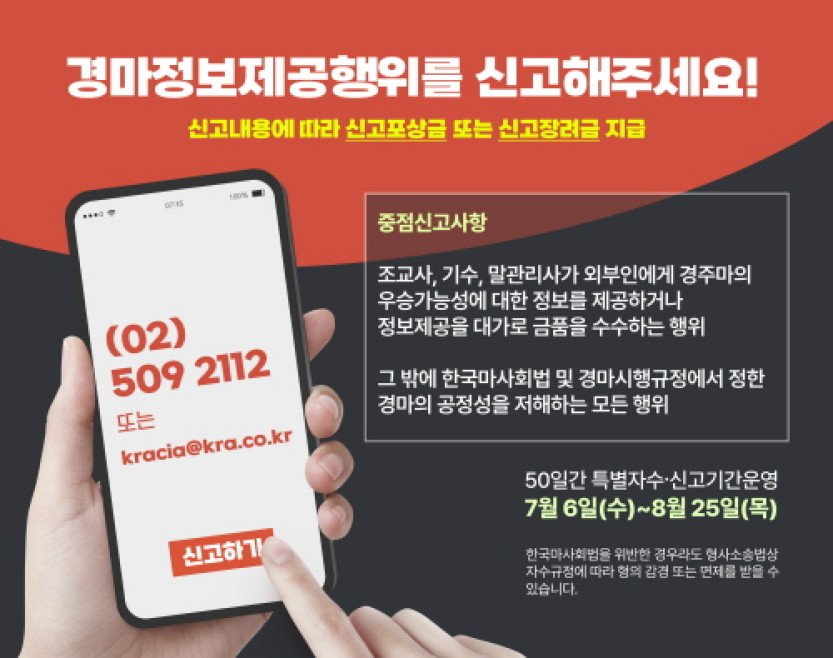 한국마사회, '경마정보 제공행위를 신고해주세요'