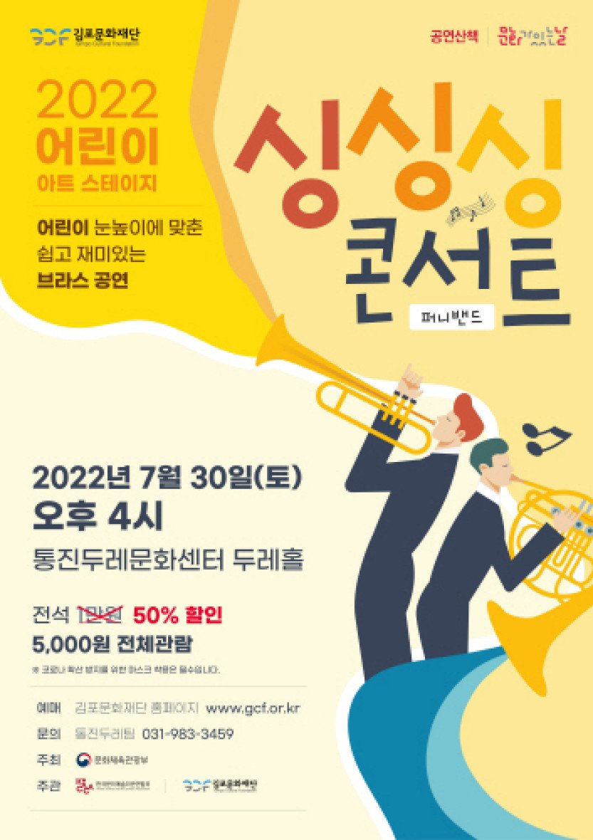 김포문화재단 통진두레문화센터에서 오는 30일 '2022 어린이 아트 스테이지' '싱싱싱 콘서트'를 선보일 예정이다.이번 어린이 아트 스테이지는 여름 방학 기간을 맞이해 …