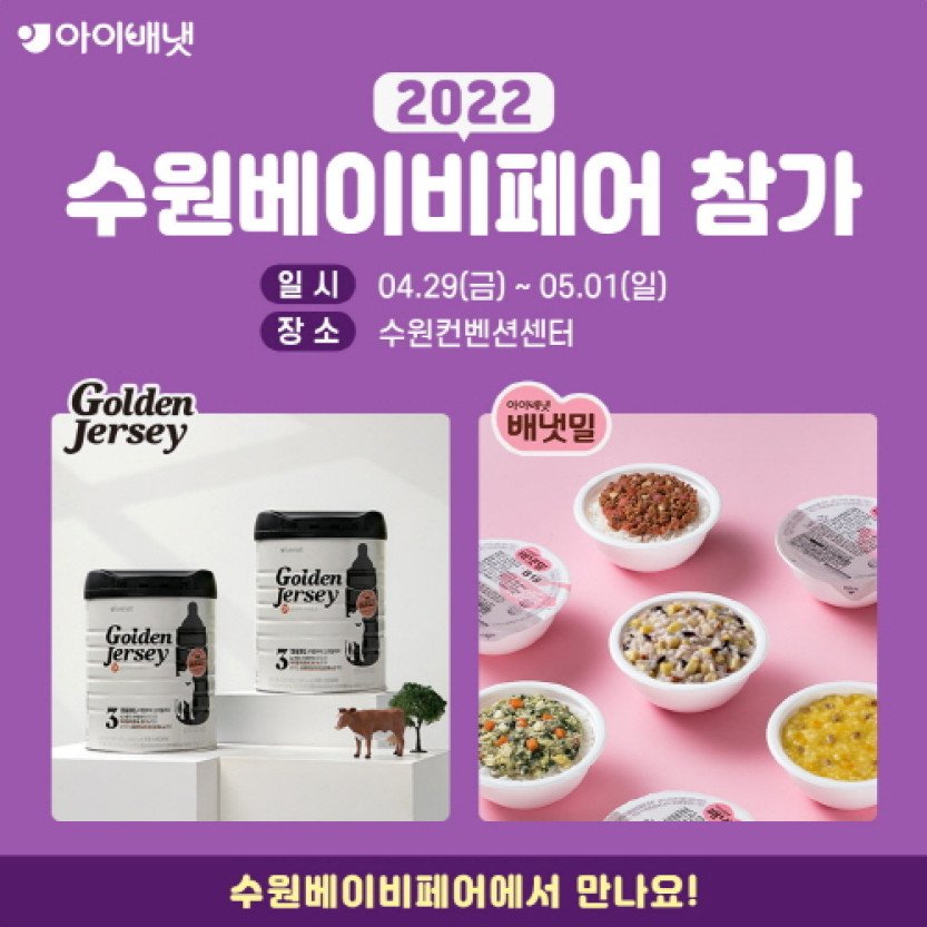 영유아 식품 전문기업 아이배냇이 4월 29일부터 5월 1일까지 수원컨벤션센터에서 열리는 '2022 수원베이비페어'에 참가해 자사의 유아식, 이유식 제품을 선보인다.아이배…