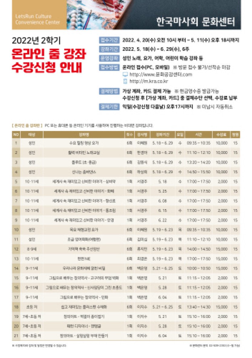 한국마사회, 2022년 2학기 온라인 문화센터 수강생 모집