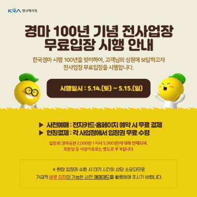 한국마사회, 경마 시행 100년 기념 고객 무료입장 실시