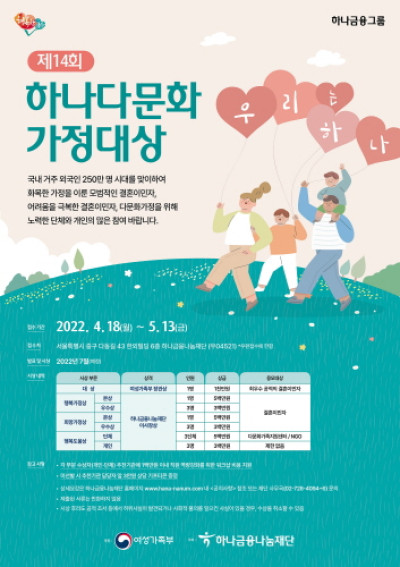 하나금융나눔재단, '제14회 하나다문화가정대상' 공모