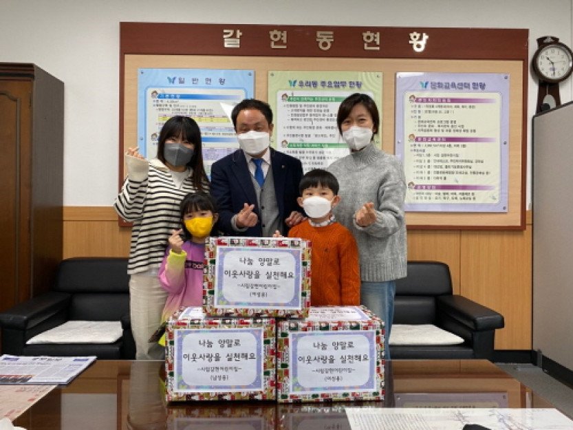 어린이집 아이들이 고사리손으로 손수 포장한 양말 100켤레가 어려운 이웃에게 전달됐다.과천시 갈현동 행정복지센터는 지난 28일 시립 갈현어린이집(원장 문혜선)으로부터 양…