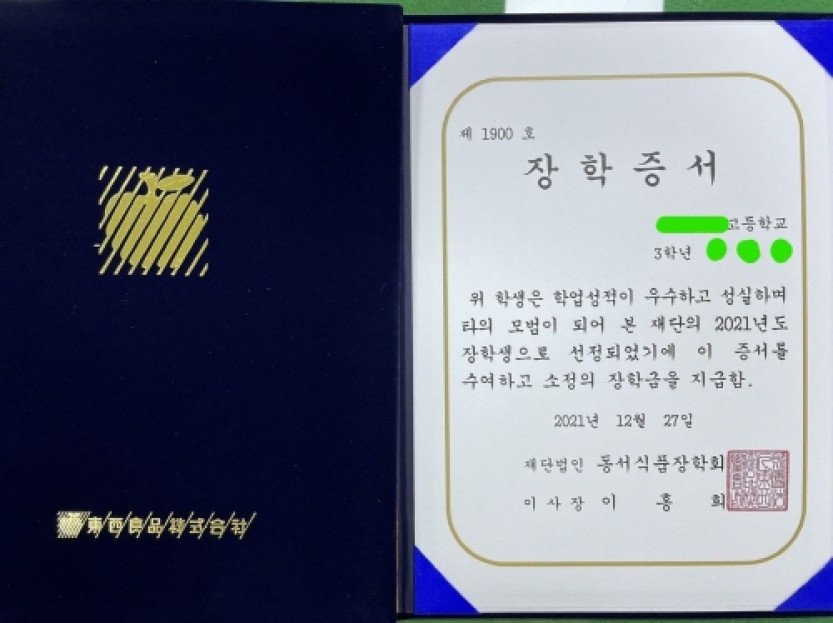 동서식품장학회, 창녕군에 장학금 1400만 원 전달