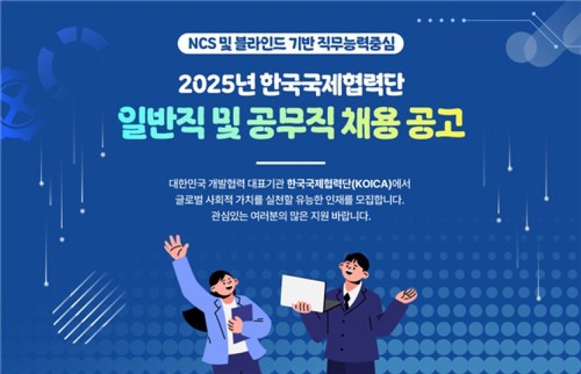 코이카(KOICA, 한국국제협력단)가 2025년 공개 채용을 통해 국제개발협력으로 인류 공영과 세계평화 증진에 기여할 직원을 선발한다.공개 채용 분야 및 인원은 일반직 …