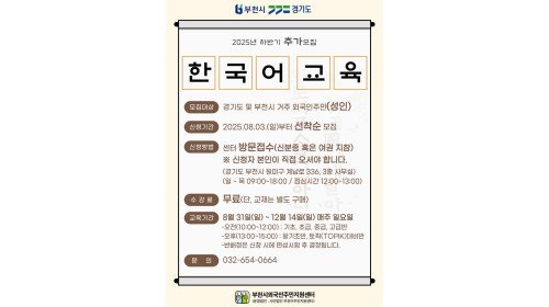 부천시 외국인주민지원센터, 외국인주민 ‘한국어 교실’ 하반기 수강생모집