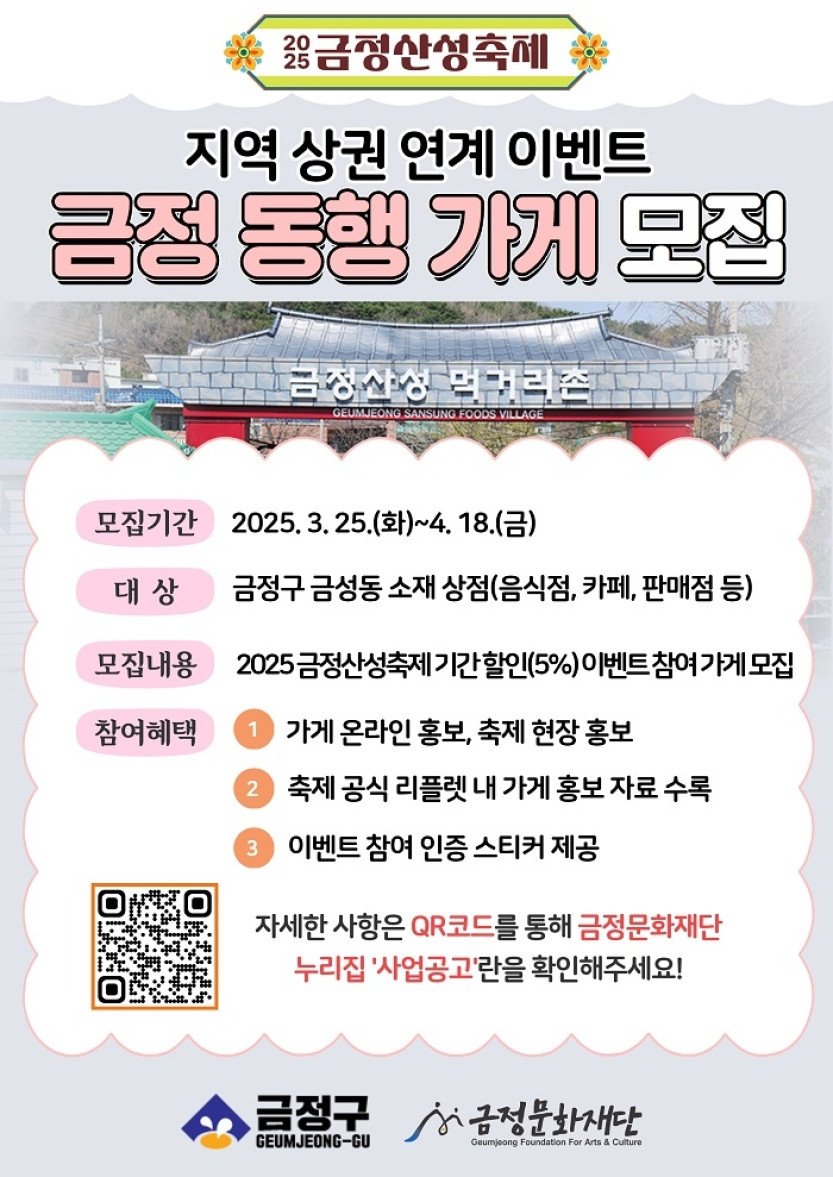 금정문화재단, 금정산성 축제와 함께할 '금정 동행 가게' 모집