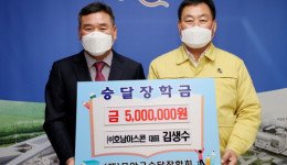 호남아스콘산업 김생수 대표, 무안군에 승달장학금 500만원 기탁