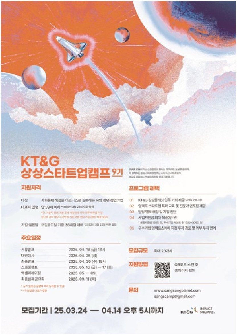 KT&G, 청년 창업 지원 프로그램 '상상스타트업캠프' 9기 모집