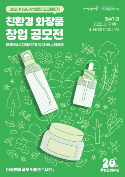 KT&G 상상마당 부산이 친환경 화장품 창업을 지원하기 위해 '2025 KT&G 상상마당 코코챌린지(Korea Cosmetics Challenge)' 공모를 오는 3월 17일부터 4월 14일까지 진행한다.
