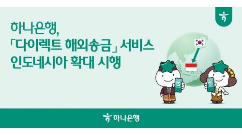 하나은행, '다이렉트 해외송금' 서비스 '인도네시아'로 확대 시행