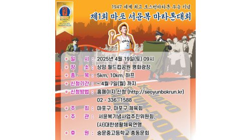 마포구, 보스턴 마라톤 우승 신화 '서윤복 마라톤'으로 재현한다
