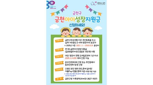 금천구, 2세 이후 육아 지원 공백 줄인다…'금천아이성장지원금' 도입