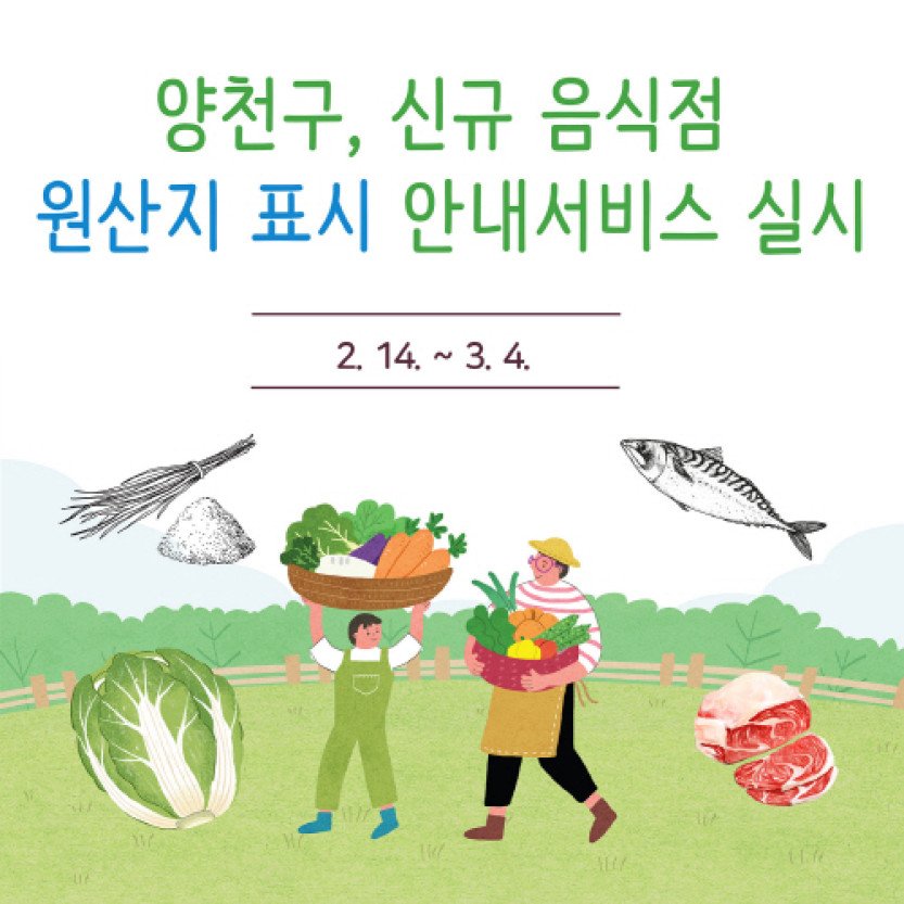 서울 양천구(구청장 김수영)가 2월 14일부터 3월 4일까지 찾아가는 맞춤형 '신규음식점 원산지 표시 안내서비스'를 실시한다.'신규음식점 원산지 표시 안내 서비스'는 상…