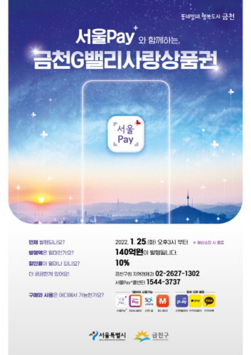 금천구, 금천G밸리사랑상품권 상반기 140억 발행