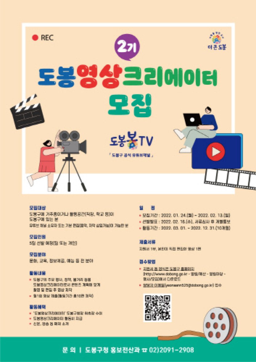 도봉구 '도봉봉TV', 도봉영상크리에이터 2기 모집