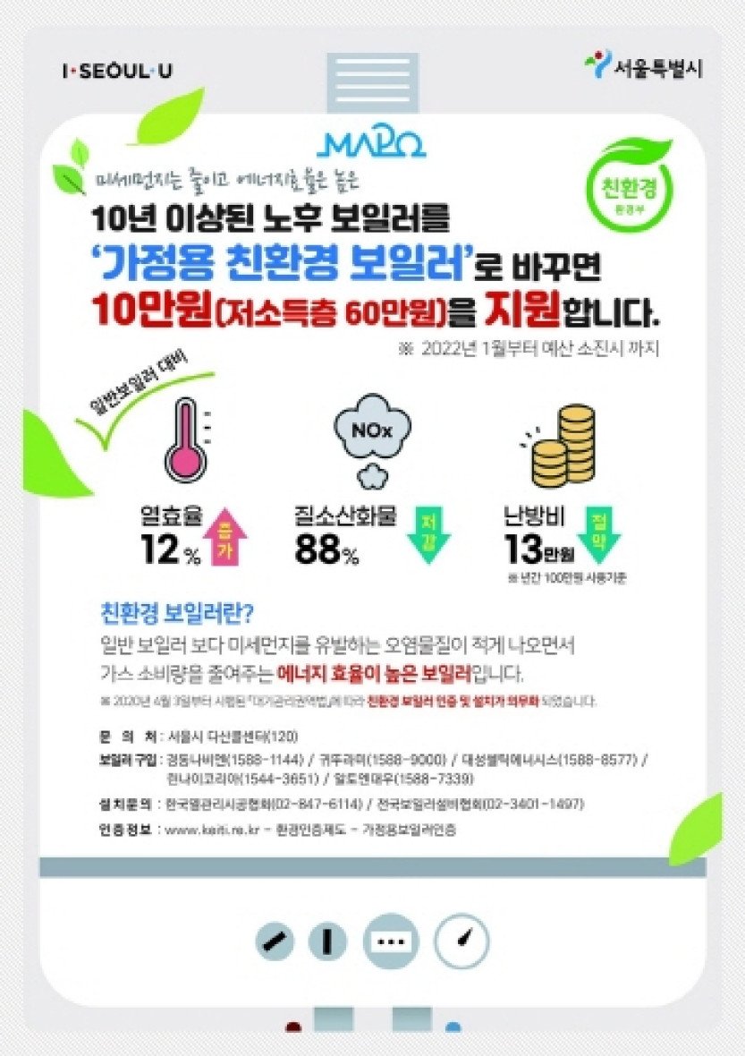 마포구, 친환경 보일러로 교체하면 1대당 10만원 지원