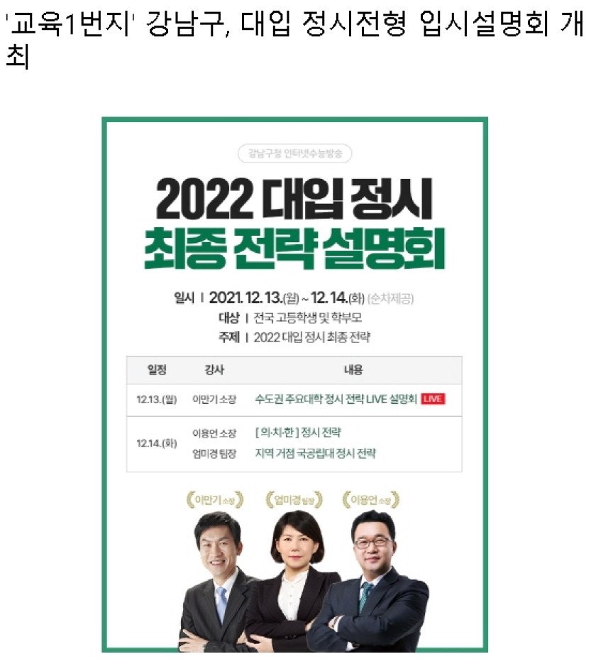 '기분 좋은 변화, 품격 있는 강남'을 실현 중인 서울 강남구(구청장 정순균)가 2022학년도 대학수학능력시험을 마친 수험생과 학부모를 대상으로 '대학입시 정시전형 입시설명회'를 …