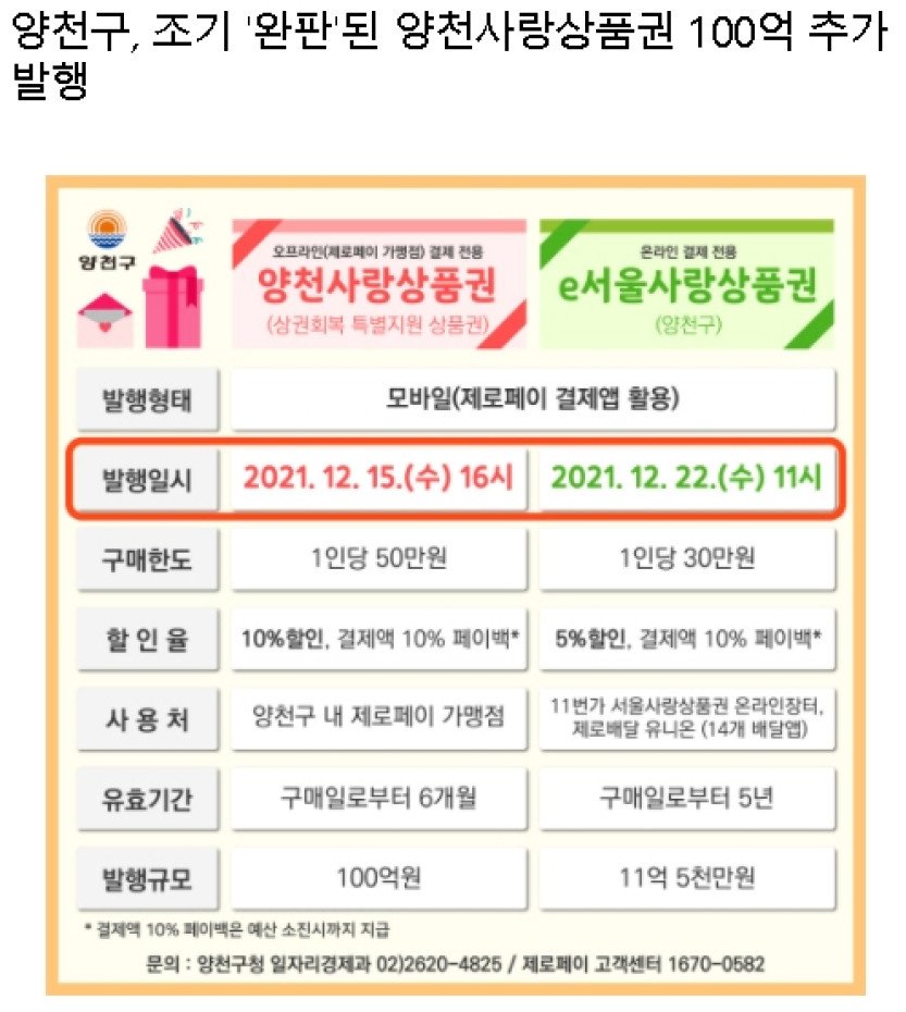 양천구, 조기 '완판'된 양천사랑상품권 100억 추가 발행