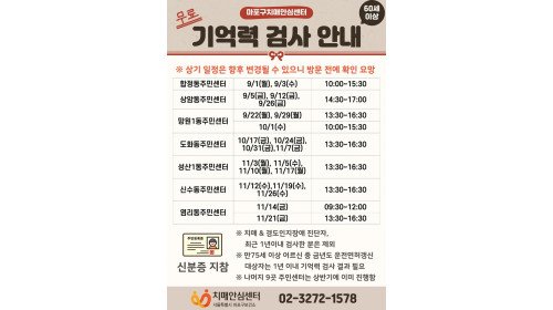 마포구, '기억 지킴이' 나선다…하반기 주민센터 치매조기검진 실시