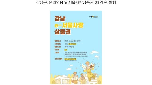 강남구, 온라인용 'e-서울사랑상품권' 25억 원 발행