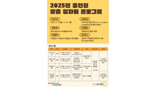 양천구, 60세 이상 일자리 맞춤 지원…'은퇴자·고령층' 전문성 키운다