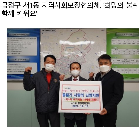 부산 금정구(구청장 정미영) 서1동 지역사회보장협의체(공동위원장 양태수)은 지난 17일부터 기름보일러를 사용하는 저소득 가구 15세대에 세대당 최대 15만 원 상당의 난방유를 지원하는 '동절기 사랑의 난방지원' 사업을 추진한다고 21일 밝혔다.
