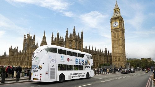 부산엑스포 응원 'LG 엑스포 버스', 런던 시내 달린다